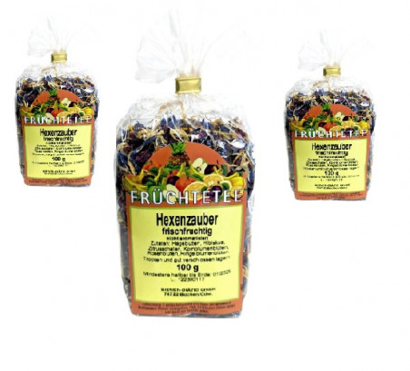 اكتشف سحر شاي الفواكه السحري للساحرة! استمتع بالفواكه الطازجة لهذا الشاي الذي لا يضاهى، وهو عديم النكهة ويستمد رائحته من مكونات عالية الجودة فقط. انغمس في عالم الوركين الوردية والكركديه وقشور الحمضيات والأزهار المغرية لزهور الذرة والورود والقطيفة. متعة لجميع الحواس! احصل الآن على 100 جرام من شاي فواكه هيكسنزاوبر ودع نفسك مفتونًا بمذاقها الجذاب!