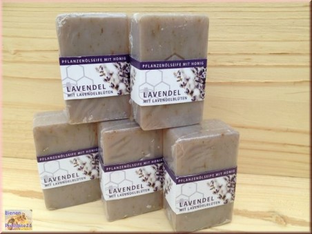 Pflanzenölseife mit Honig und einem frischem, fein-herben Lavendelduft aus echten Lavendelblüten.