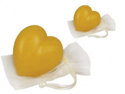 Мыло-сердце желтого цвета, запечатано этикеткой.